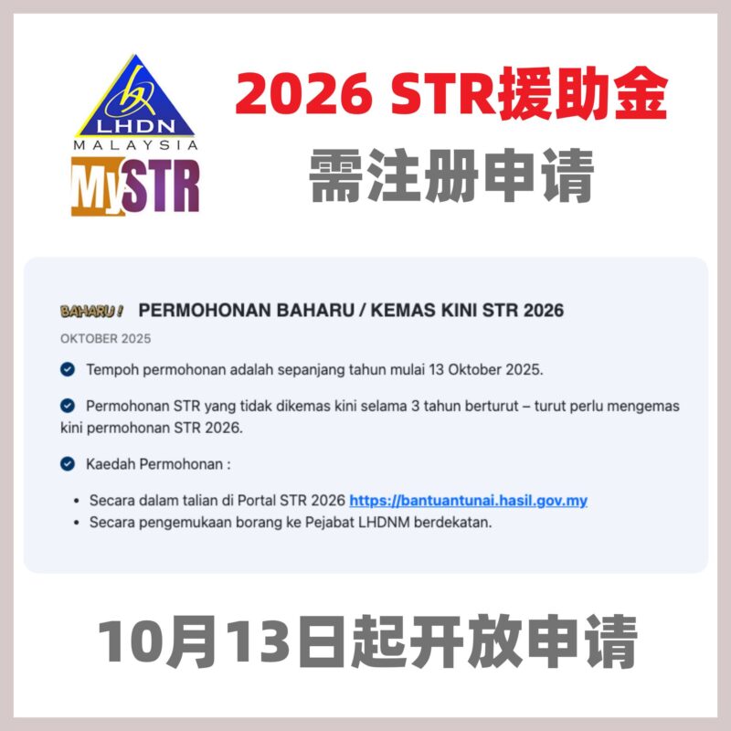 2026年STR援助金开放申请!😍10月13日起可通过2种方法注册申请