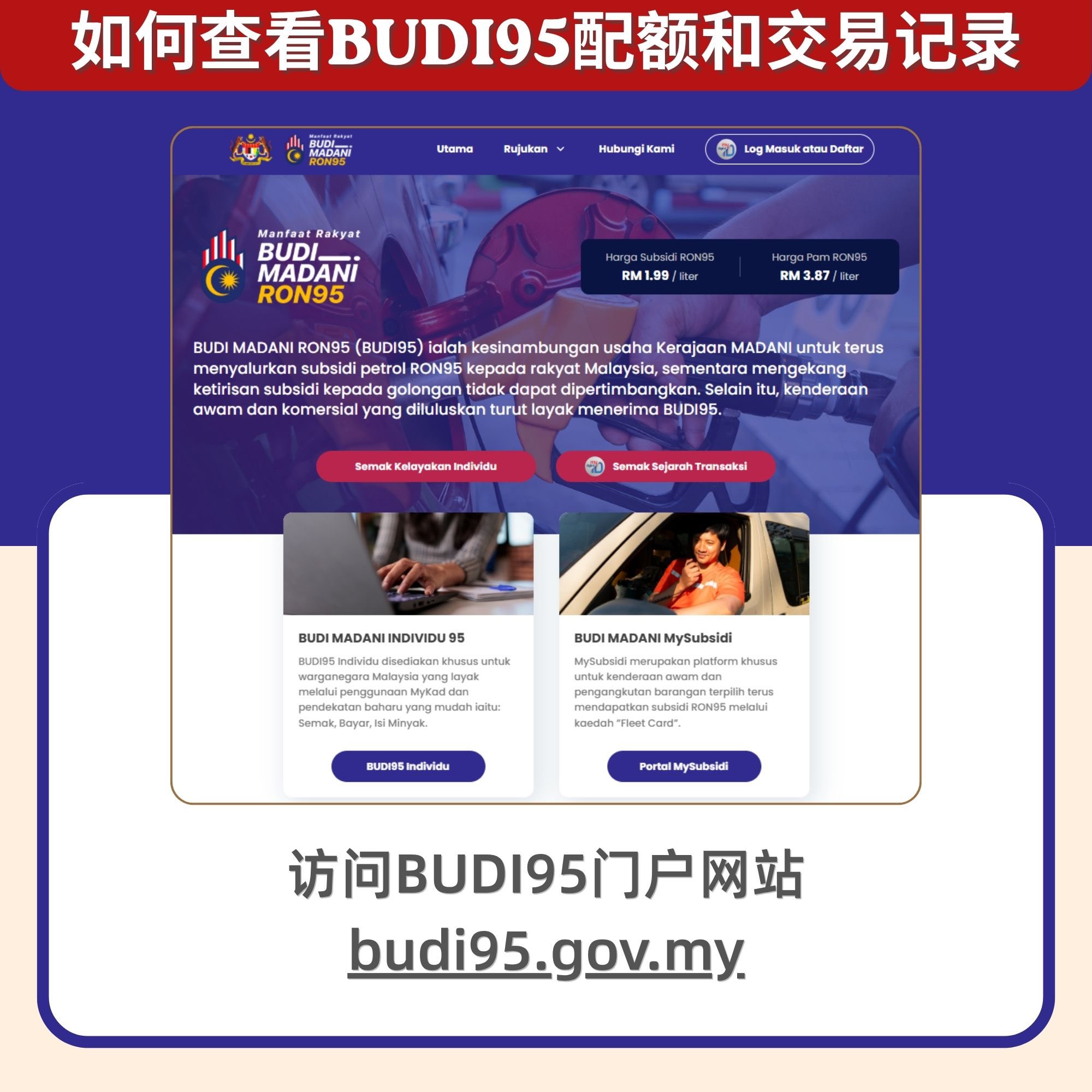 在 BUDI95 汽油补贴计划 下,符合资格的马来西亚公民每月可享 💰 RM1.99/升 的优惠价购买 RON95 汽油 ⛽。想确认你的配额有没有被“偷偷用掉”?快登录 BUDI95 官方门户网站,用 MyDigital ID 一查就明白!
