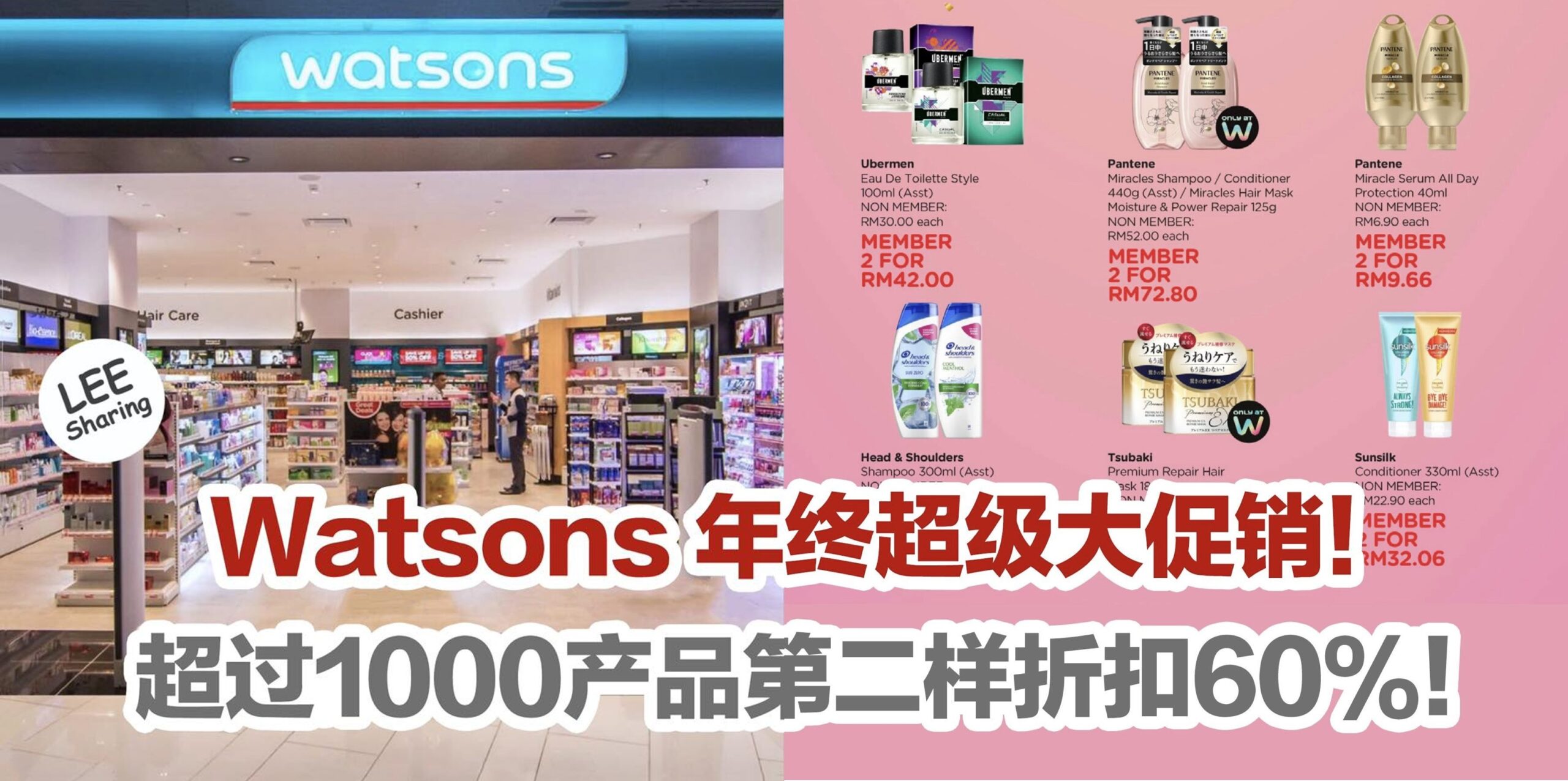 Watsons 推出年终超级大促销!超过1000产品第二样折扣60%!
