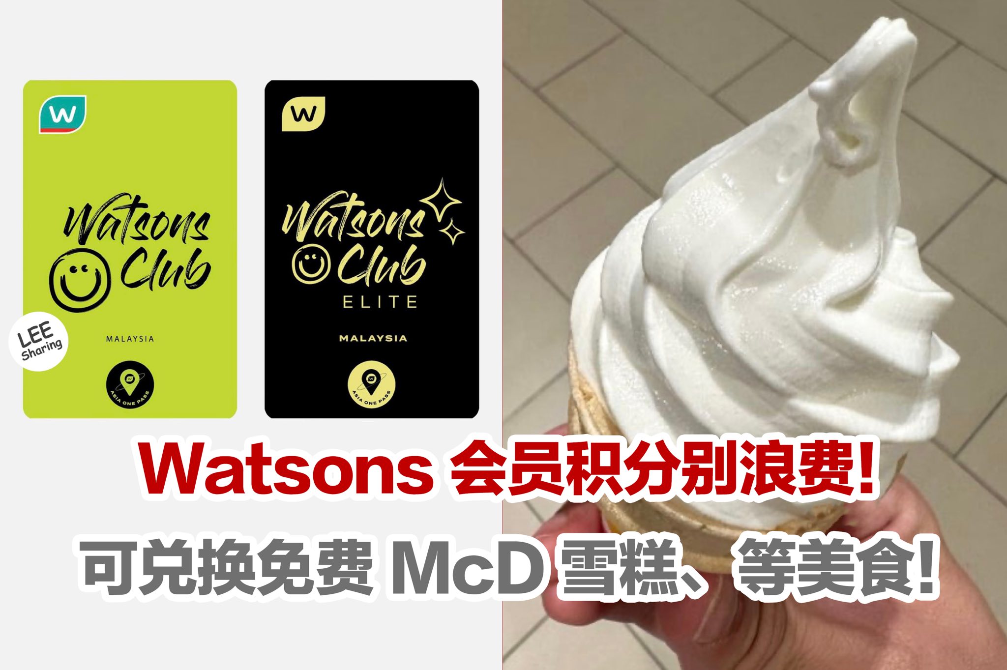 Watsons 会员积分别浪费!可兑换免费 McD 雪糕、美食券等!
