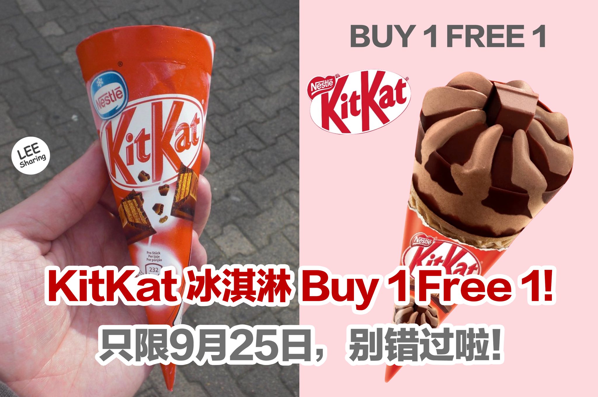 KitKat 冰淇淋Buy 1 Free 1!只限9月25日,别错过啦!