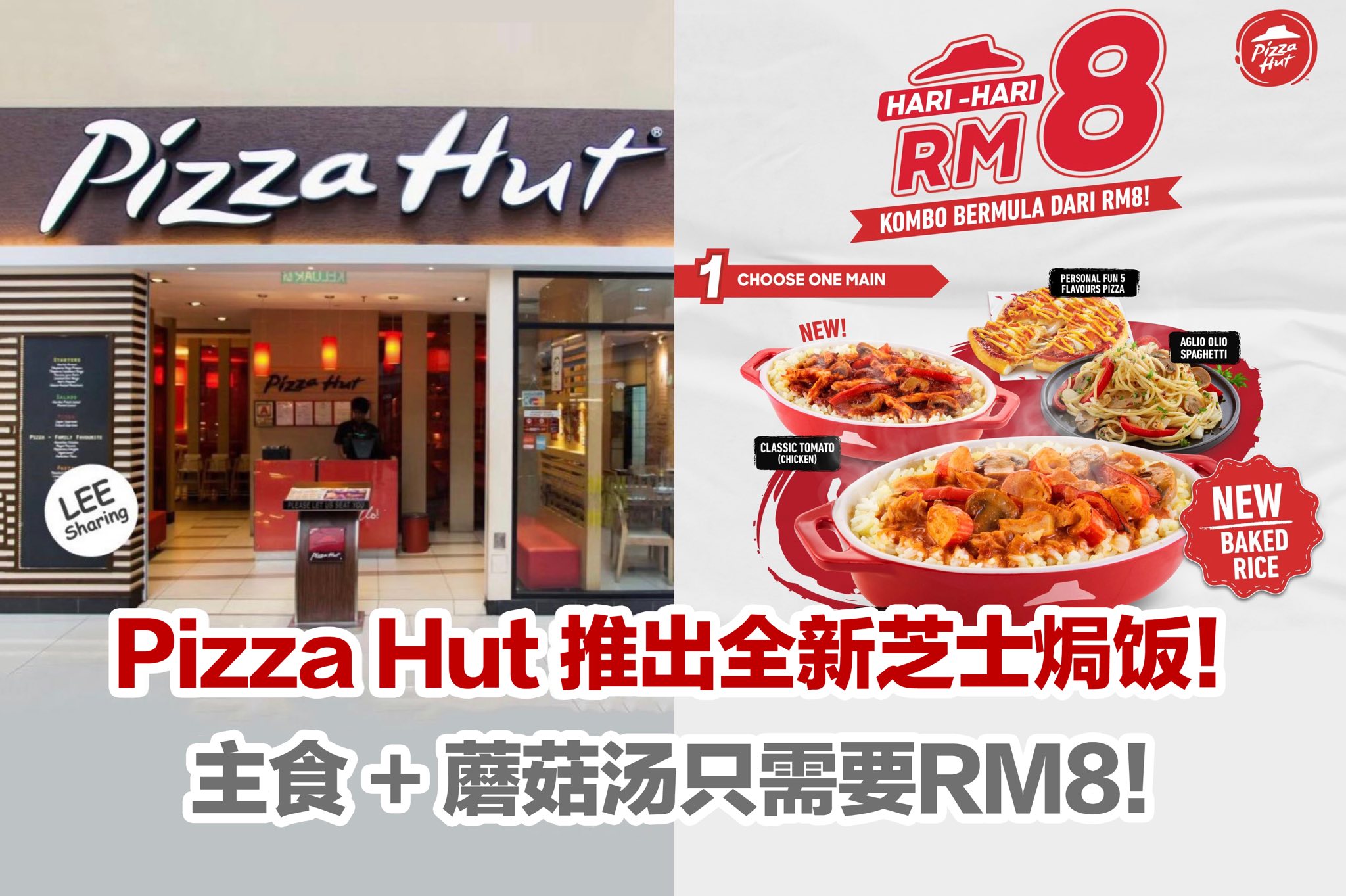 Pizza Hut 推出全新芝士焗饭!主食 + 蘑菇汤只需要RM8!