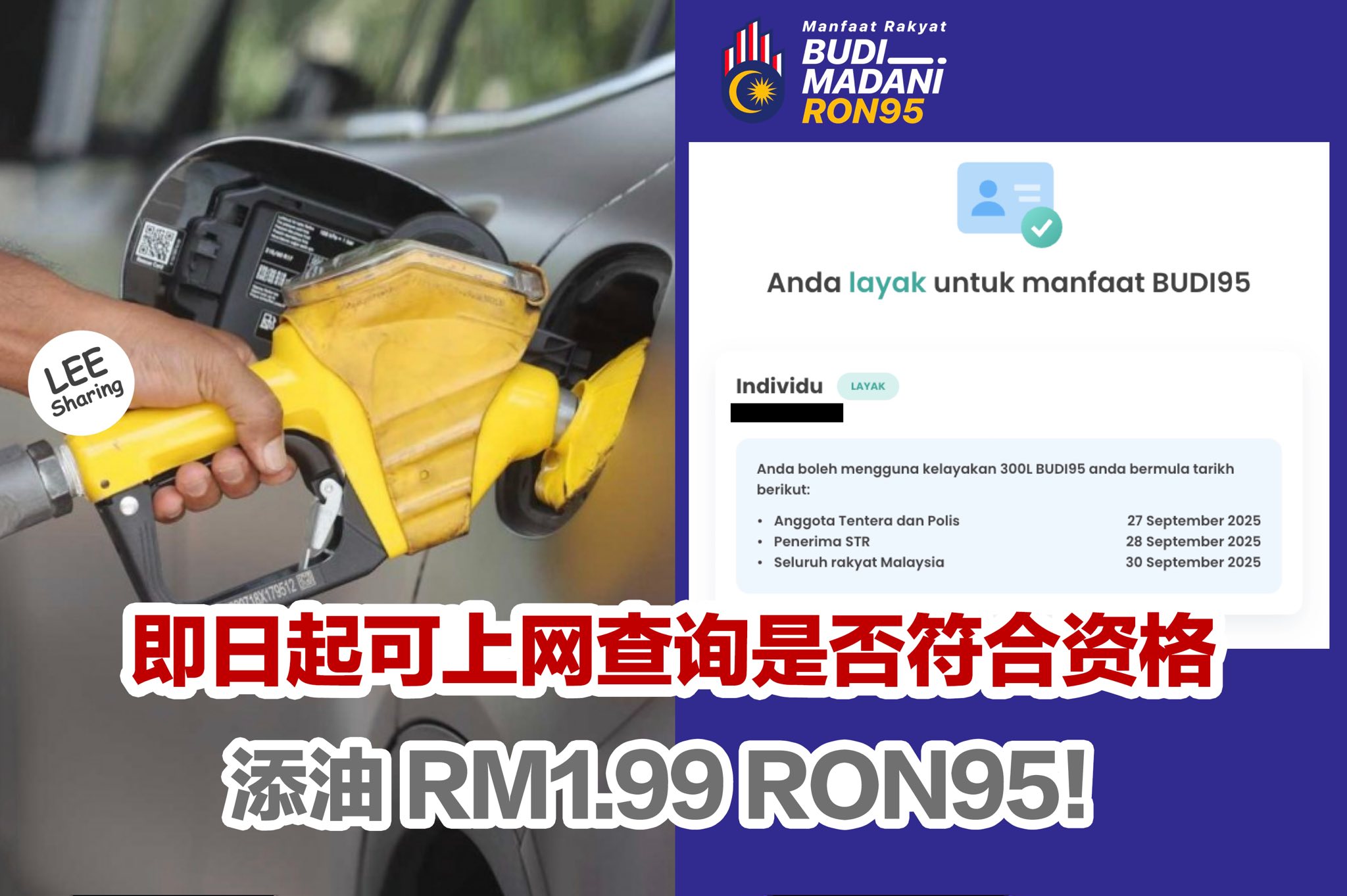 即日起可上网查询是否符合资格添油RM1.99 RON95!