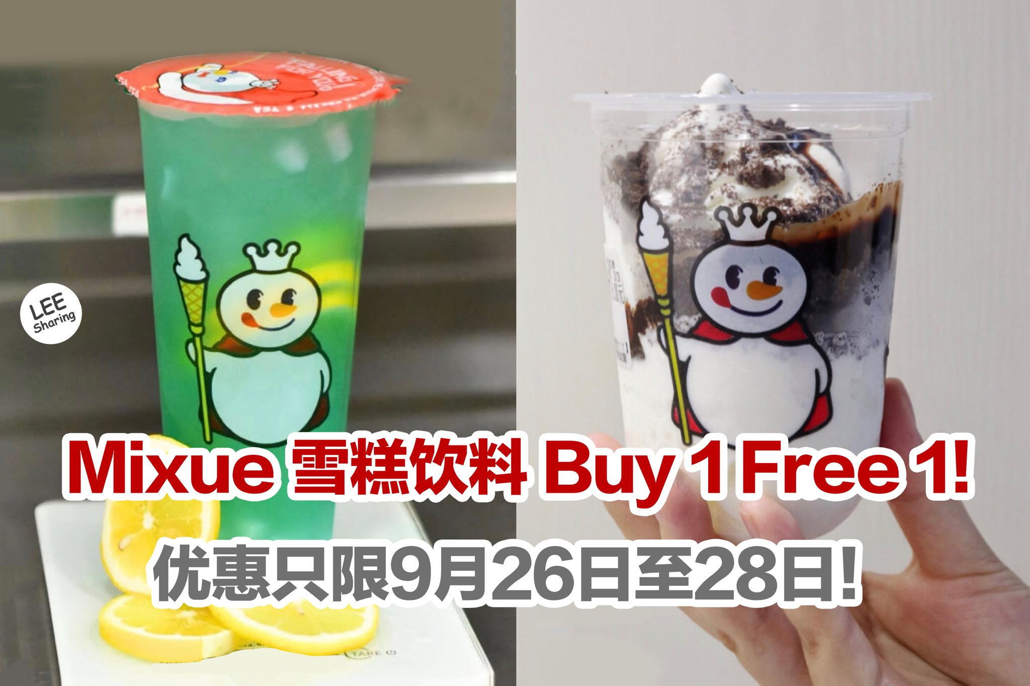 Mixue 雪糕和饮料Buy 1 Free 1!只限9月26日至28日!