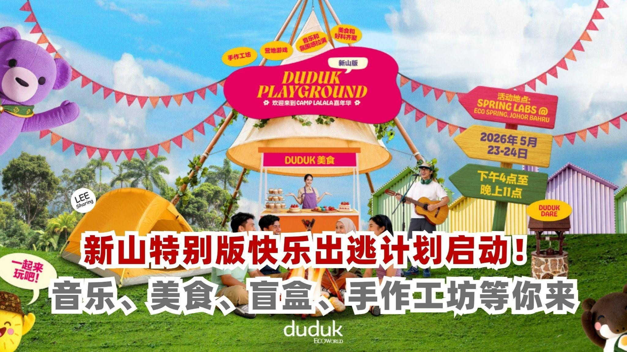 在这个 5 月,暂时忘掉忙碌的日程表,来新山特别版 DUDUK PLAYGROUND 嘉年华找回那个会玩、会笑、会生活的自己。微风、晚霞、音乐和最好的朋友,现在就预先登记,把快乐找回来!