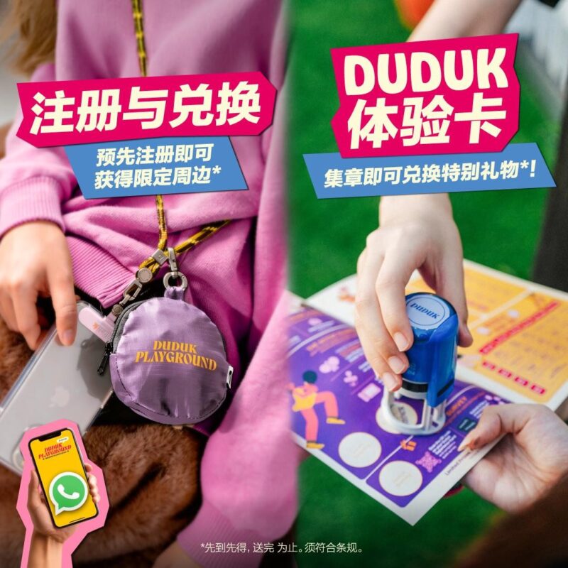活动当天到现场第一件事:先把 DUDUK 体验卡 领到手!只要完成指定任务并集满盖章,即可兑换特别礼物*!数量有限,送完为止!别明天就现在,快动动手指登记!