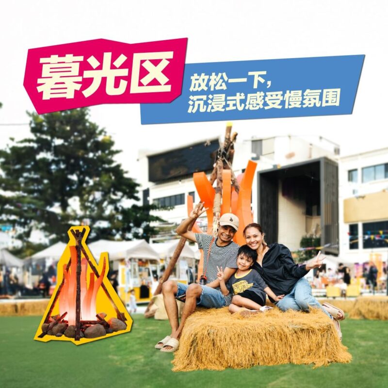玩累了?那就躲到 暮光区,和朋友一起看傍晚的橙色天空,那是全场最 Chill 的时刻,最适合和朋友聊聊八卦、吹吹风~