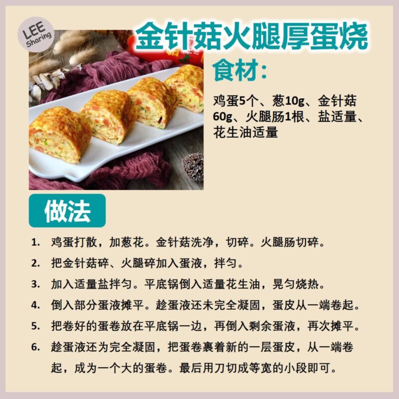 👉金针菇火腿厚蛋烧