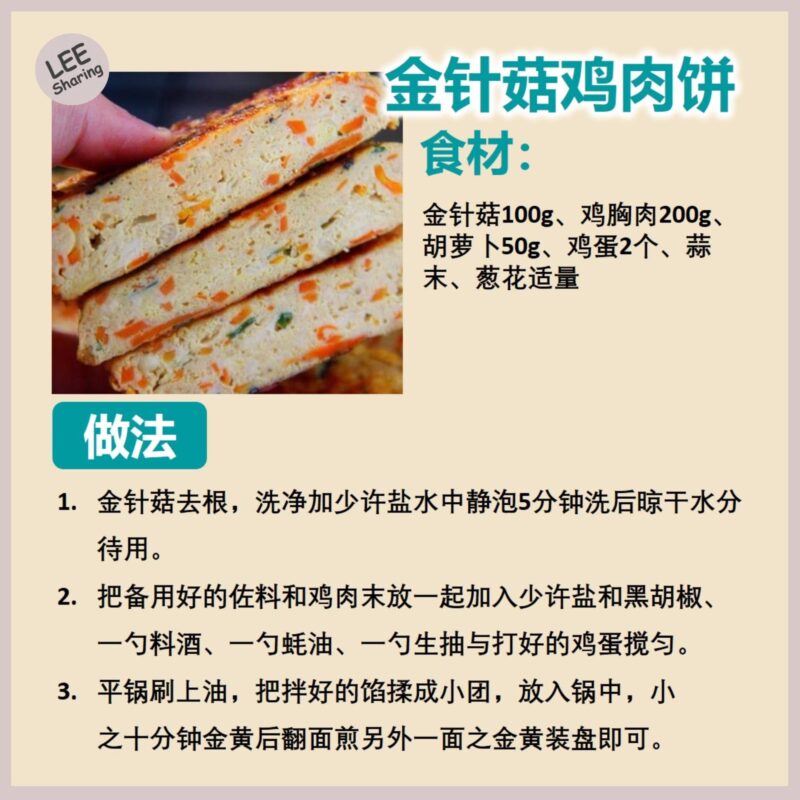 👉金针菇鸡肉饼