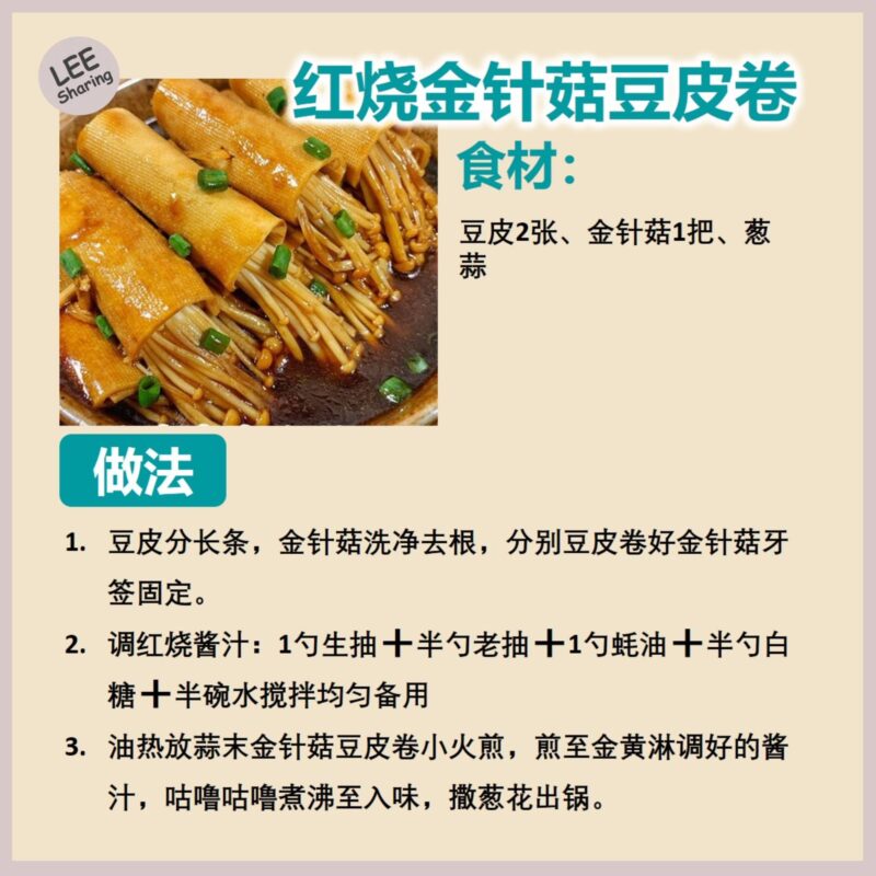 👉红烧金针菇豆皮卷