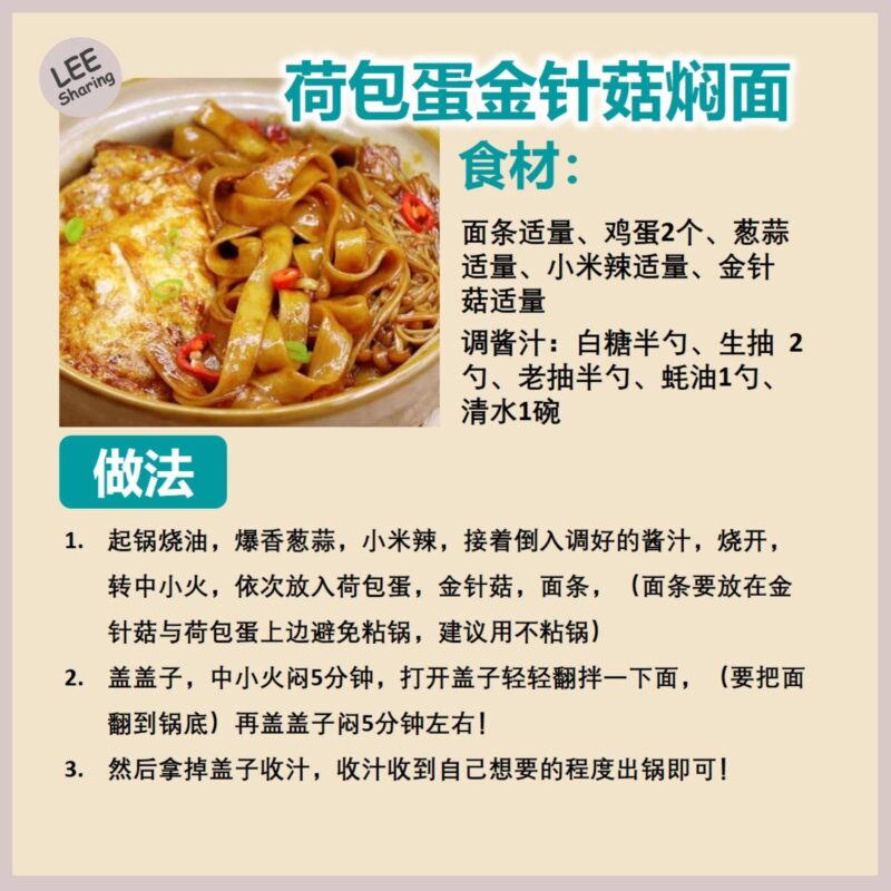 👉荷包蛋金针菇焖面