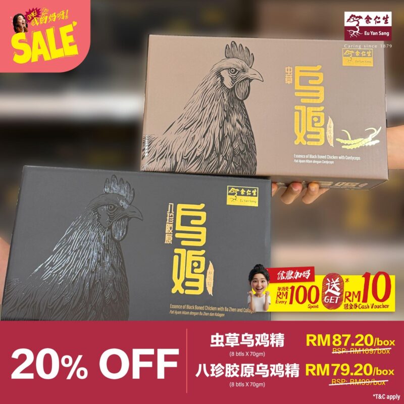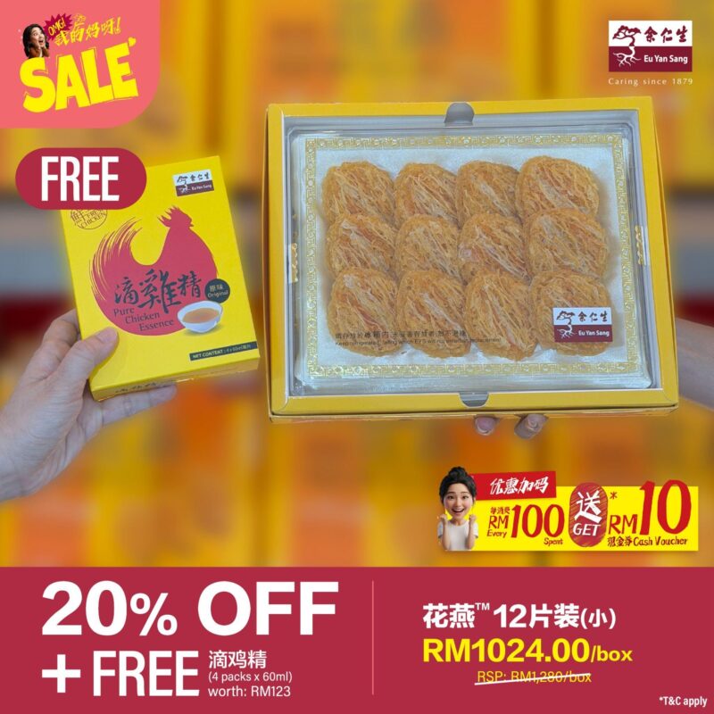 💰买 1 盒12片装花燕享 20% 折扣,还加送 4 包全马滴一的滴鸡精!