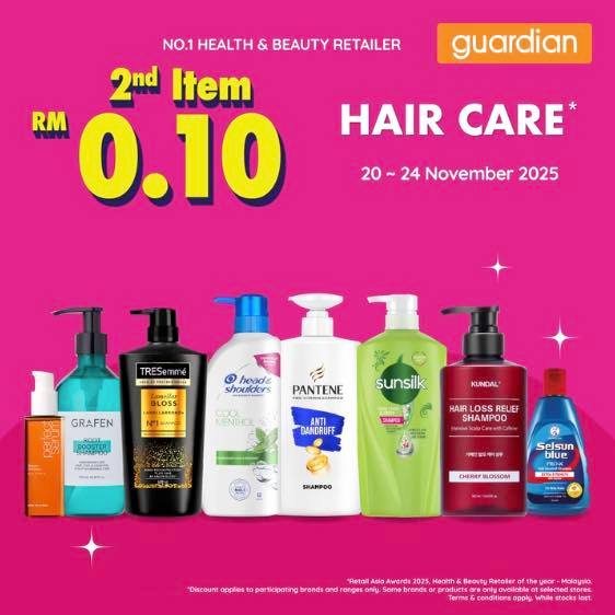 Guardian 洗发液、沐浴露第二样只需RM0.10!