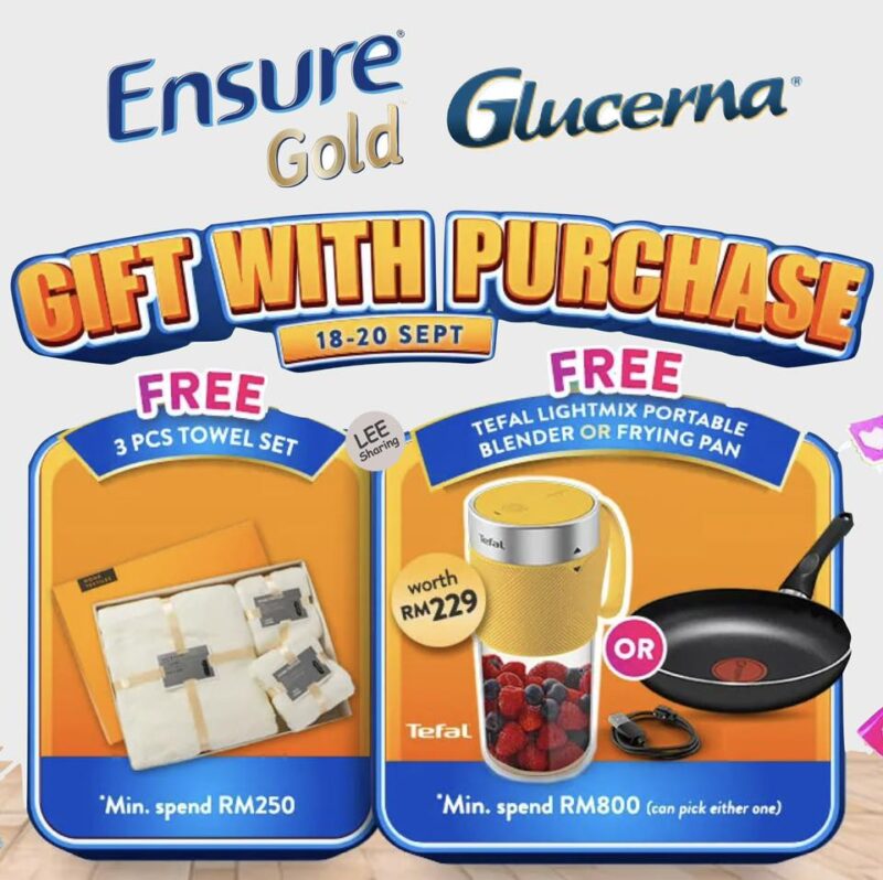 Ensure Gold、Glucerna、PediaSure、Similac 品牌日促销!9月18日至20日买奶粉折扣超多,而且还免费送超多Free Gift,其中包括果汁机、密封陶瓷碗、平底锅、玩具等等~