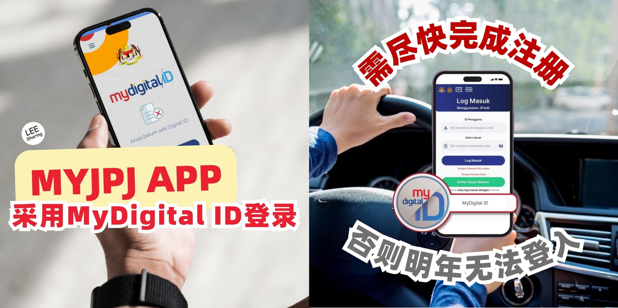 2026年2月1日起📅,MyJPJ App 将全面采用 MyDigital ID 作为唯一登录方式🚗!还没有注册的朋友要快点行动啦🤳,不然明年就没办法登入了👀!