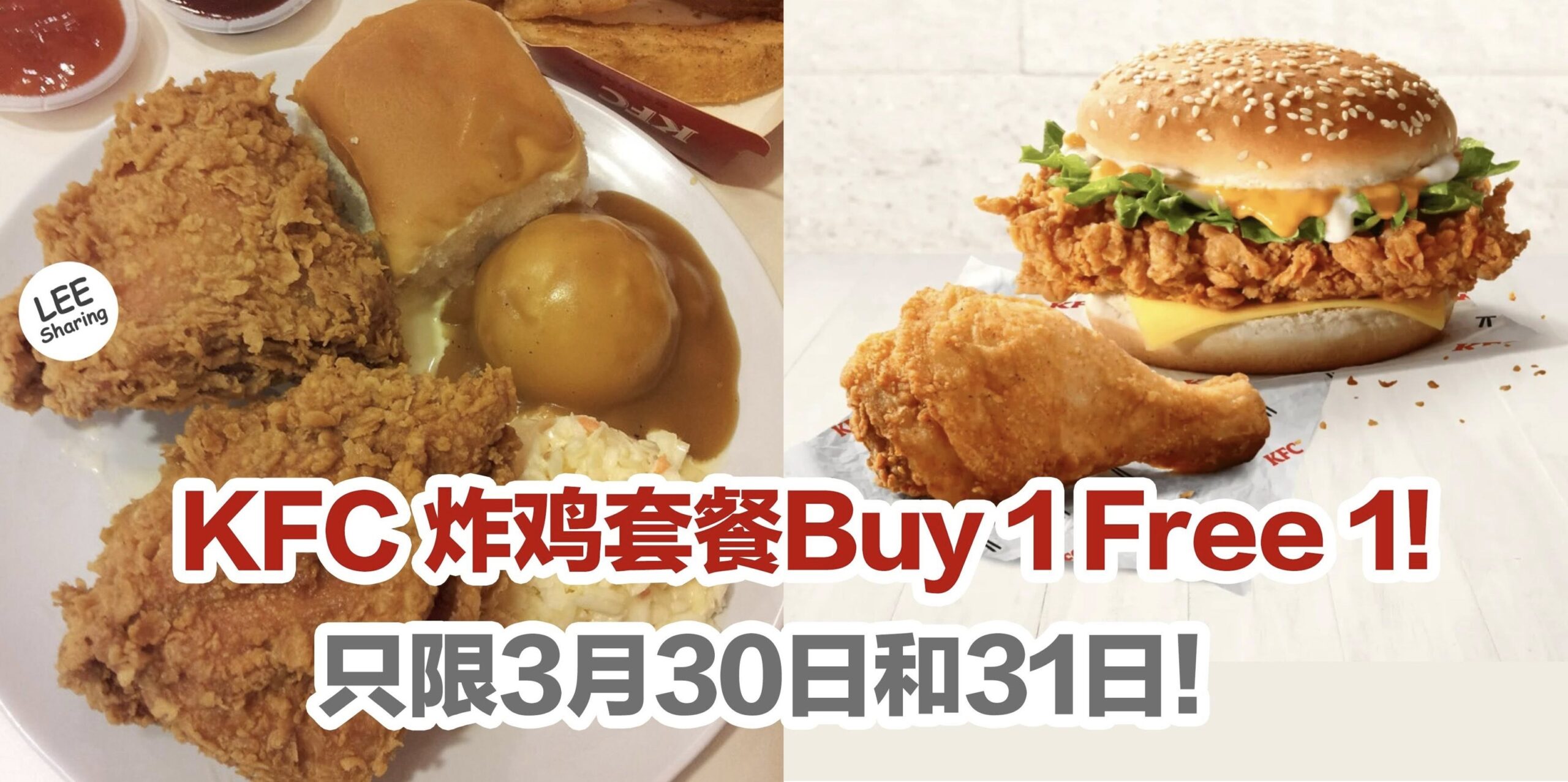 KFC 炸鸡套餐Buy 1 Free 1!只限3月30日和31日!