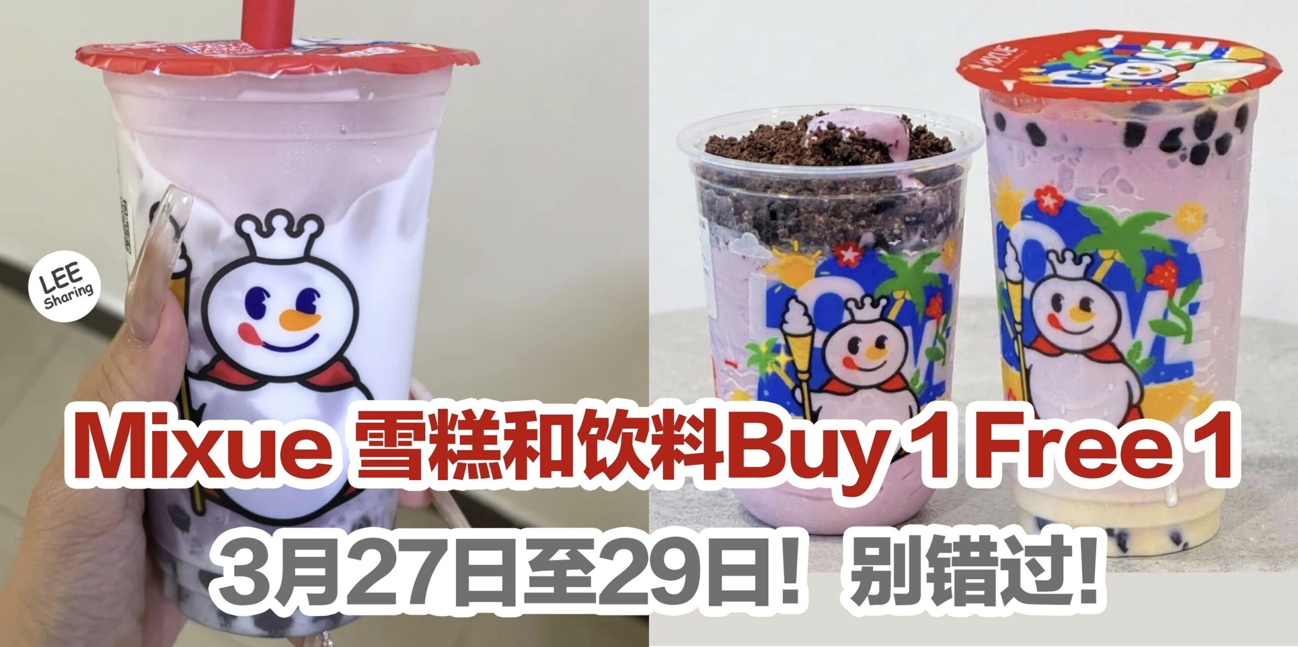 Mixue 雪糕和饮料Buy 1 Free 1!3月27日至29日!