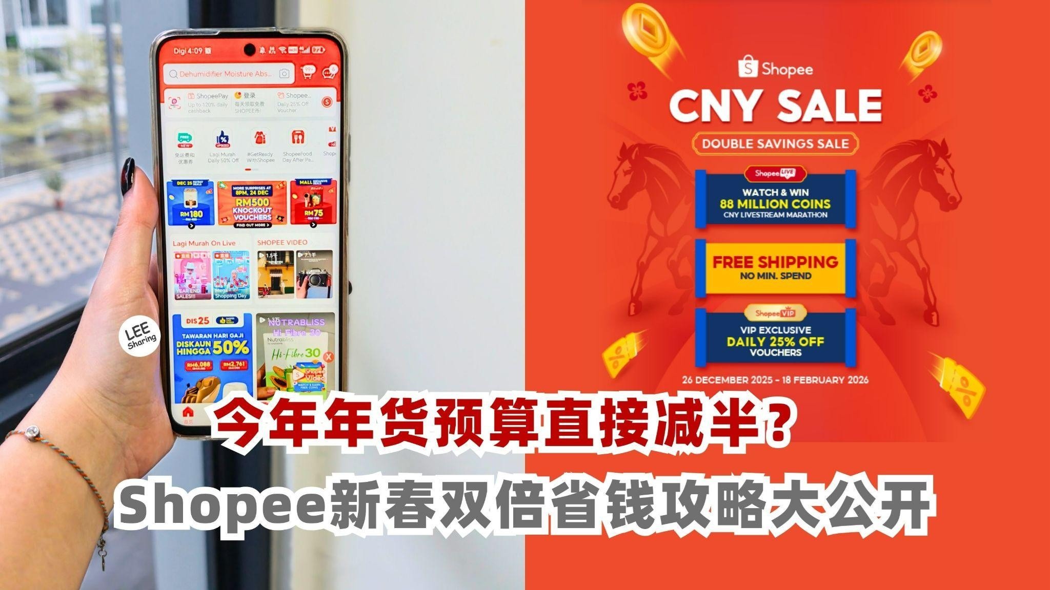 新年这样买才GENG!Shopee新年大促销双倍好康,边看边赢、天天免运,每日25% Shopee VIP 专属折扣优惠卷,让你做省钱大师,买到笑!