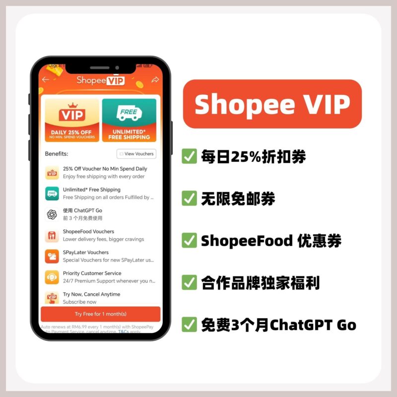 👉首个月免费成为 Shopee VIP还等什么?直接开挂!