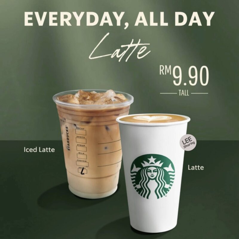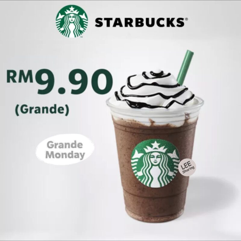 Starbucks 推出最新优惠,每个星期一 Grande-Sized 饮料只需RM9.90;Latte Tall-Sized 饮料每天只需RM9.90;每个星期四穿绿色,Grande-sized 饮料只需RM10~