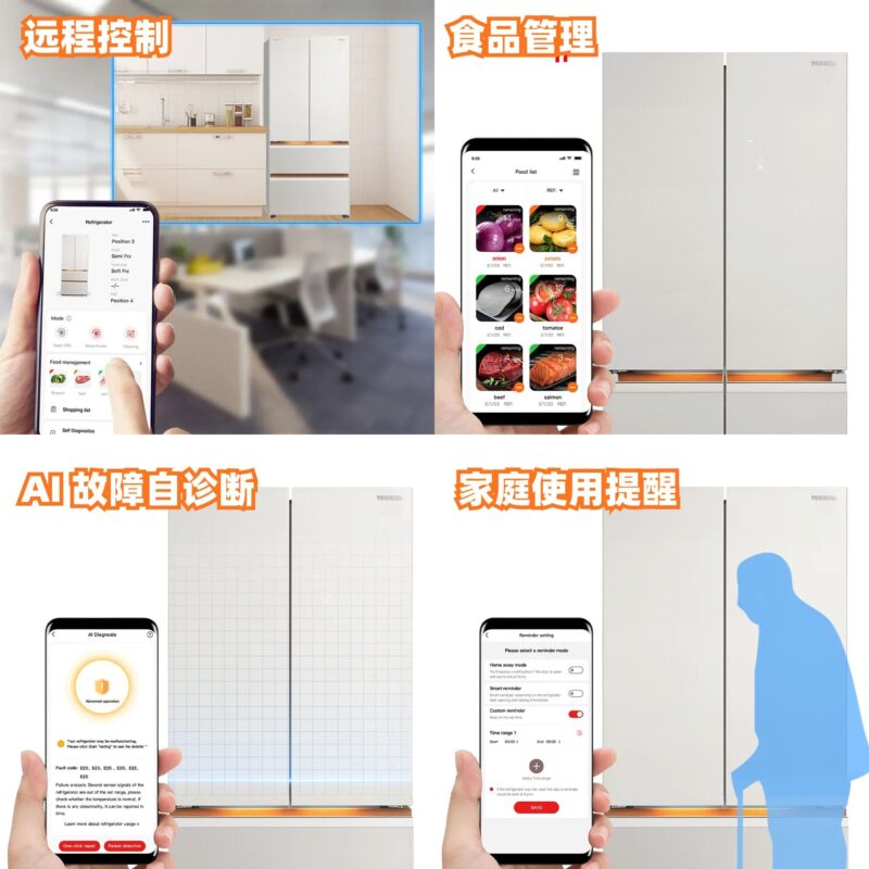 通过 TSmartLife App,可以在手机上远程调节温度、查看食材状态,甚至还有 AI 故障自诊断和能源监测。就算出门在外,也能随时掌握冰箱的“健康状况”!