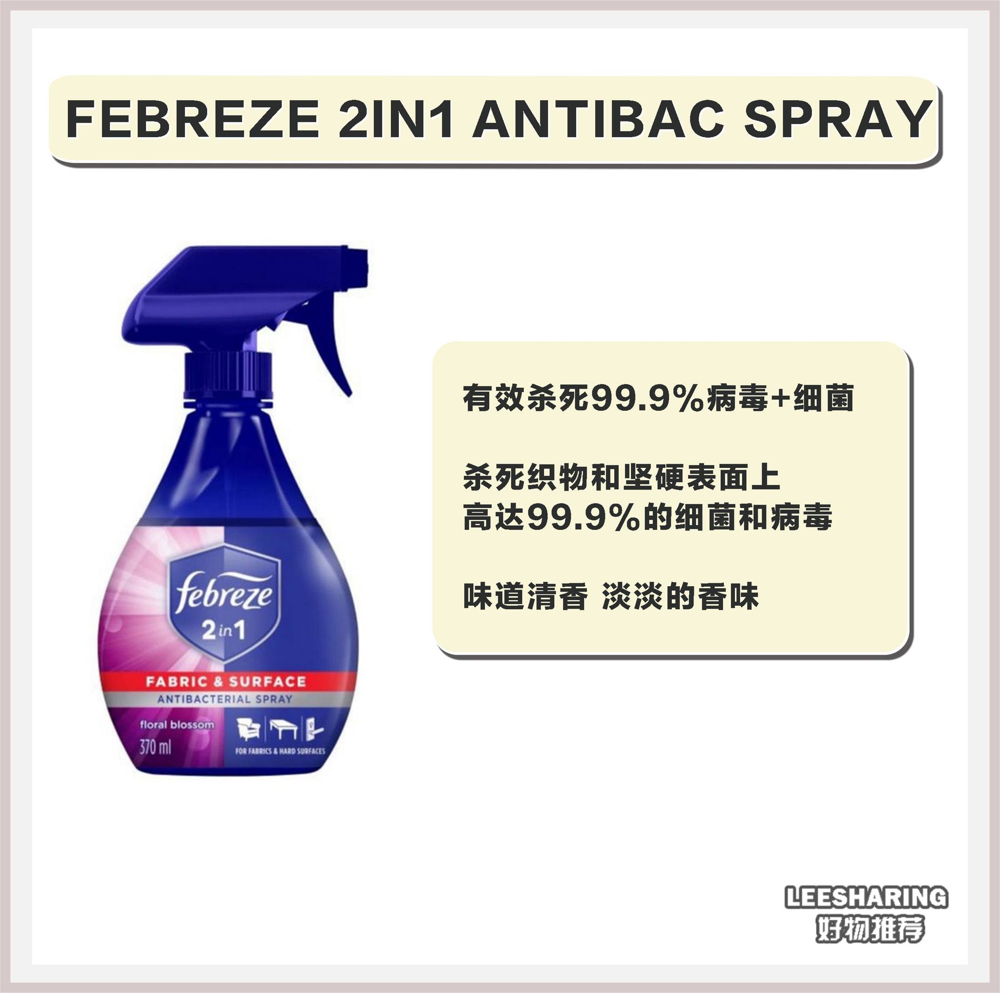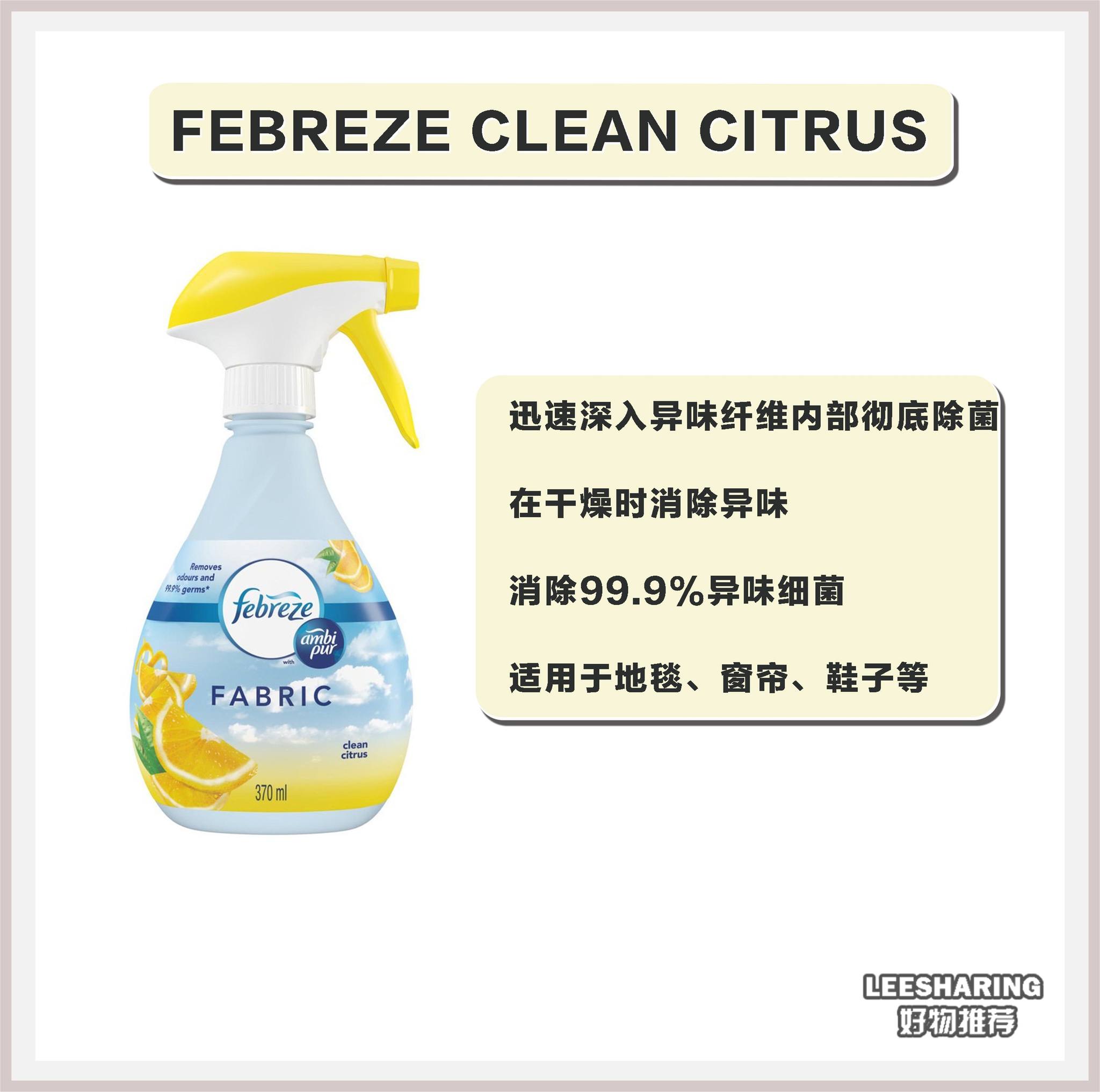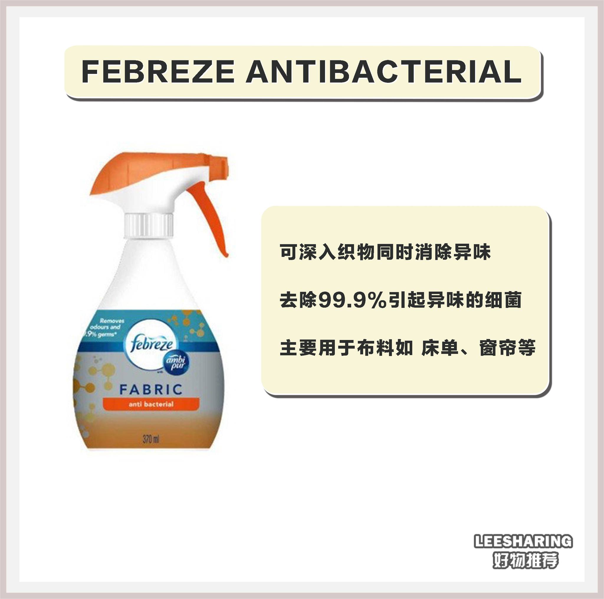 6种不同颜色的Febreze功效!可以杀菌除臭!清洁能力高达99.9%!