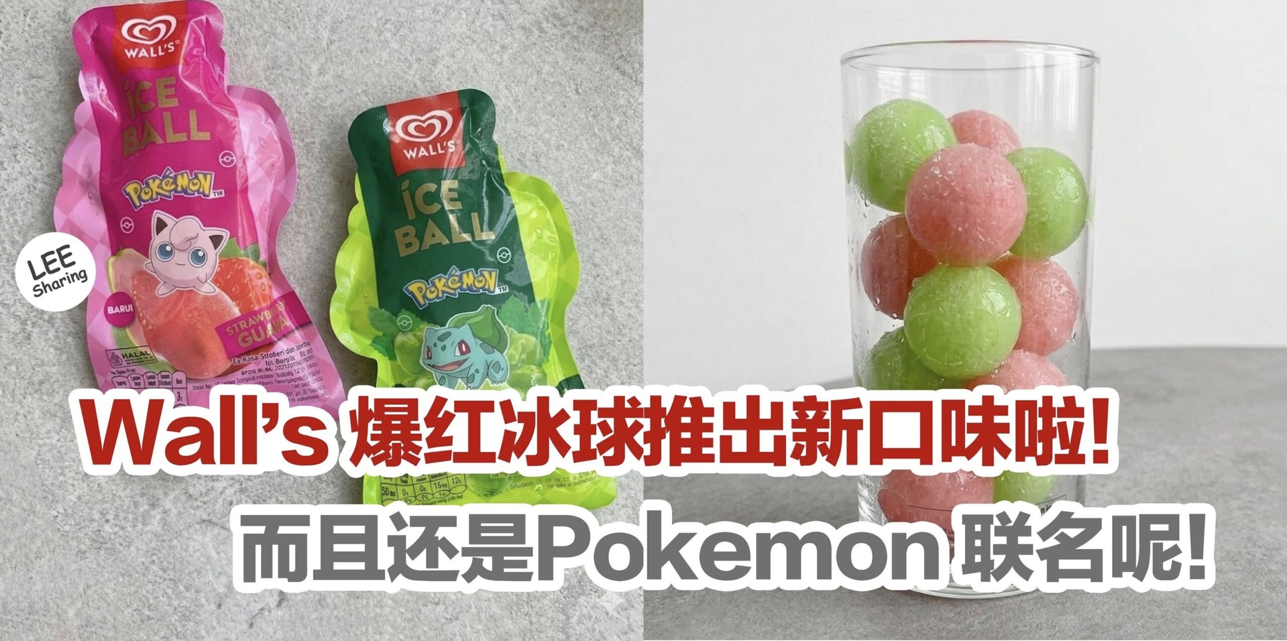 Wall’s 携手Pokemon 推出新口味联名Ice Ball,分别有Strawberry Guava 口味和 Grape 口味,冰冰凉凉的,超清爽~